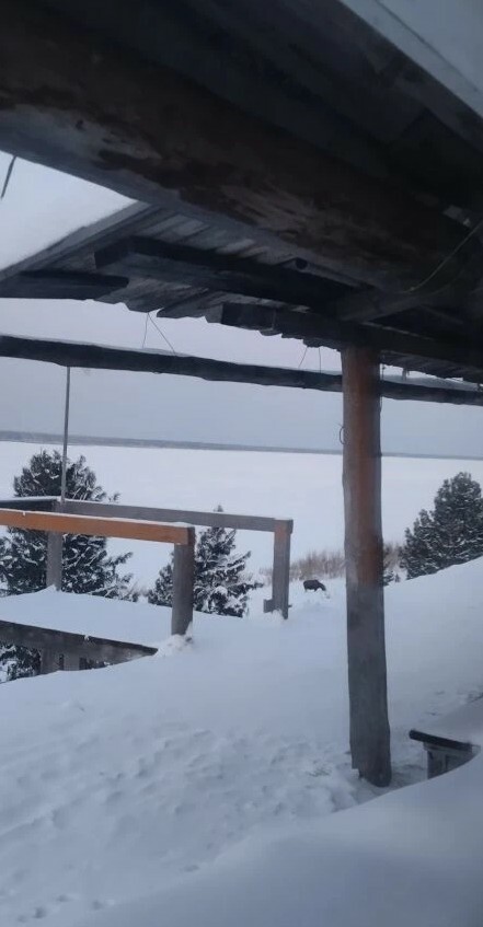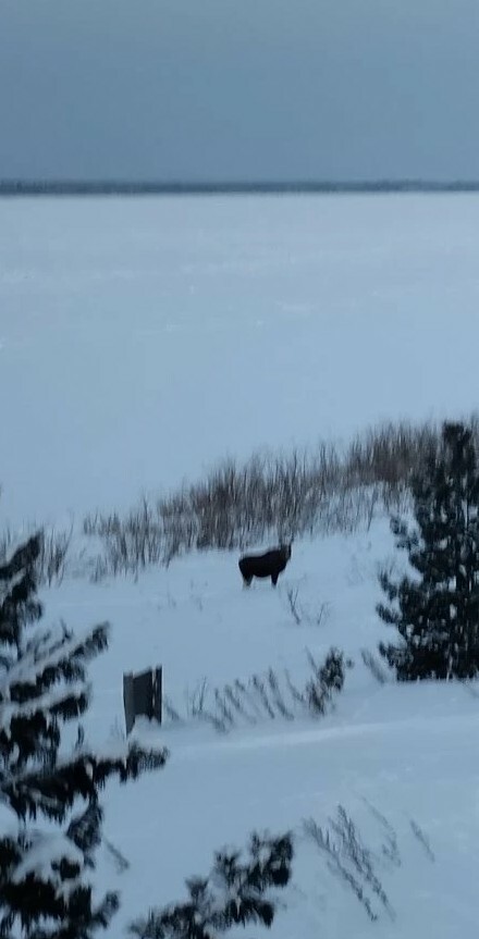 На кордоне Лебедь лоси пасутся в пойме реки Енисей.Лесных гигантов удалось заснять нашему государственному инспектору Михаилу Маковскому с крылечка кордона.Звери чувствуют, что на заповедной территории их никто не обидит, они находятся под защитой.Весна уже вступила в свои права, в лесу снега много, он рыхлый, удобнее кормиться в пойме реки. Лось повернул голову, но не убегает и продолжается лакомиться тальником.