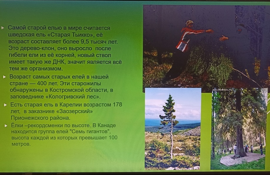 В преддверии Нового года первоклассникам Борской средней школы рассказали о ёлочке. Ребята внимательно изучили презентацию о ели, подготовленную специалистами отдела экологического просвещения и туризма заповедника "Центральносибирский". Они узнали, сколько видов елей существует в мире и России, какие из них растут в Красноярском крае и заповеднике «Центральносибирский». Дети узнали о самой старой ели в мире и в России, потрогали принесенные шишки и веточки ели, сравнили их с шишками других хвойных деревьев, таких как кедр, сосна и лиственница.Ребята познакомились с птицей клест-еловик, узнали о его питании и периоде размножения. Они также узнали, как определяют возраст дерева по годичным кольцам и какие продукты изготавливают из древесины ели, а какие части дерева используют в медицине.Дети узнали, когда ель стала символом Рождества и Нового года, и откуда появились первые стеклянные шарики и елочные игрушки.