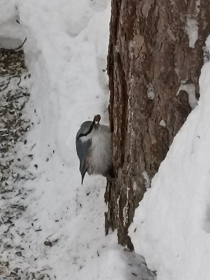 По наблюдениям орнитологов у поползня хорошее обоняние, он никогда не заинтересуется пустым орехом. Твердую кожуру умело пробивает острым прочным клювом, прижав плод к поверхности ствола, удерживая его лапкой, или поместив в скальную расщелину.Поползень — один из самых энергичных обитателей леса, часто появляющийся у кормушек вместе с синицами. На центральной усадьбе заповедника – это частый гость. Фото запечатлело, как птица лакомится семечками. Сотрудники ежегодно в зимний период проводят подкормку зимующих птиц.В заповеднике «Центральносибирский» оседлый, обычный гнездящийся вид. Обитатель различных спелых лесов, как приречных, так и водораздельных.