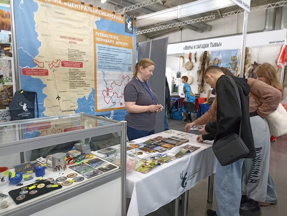 Сотрудники государственного природного биосферного заповедника «Центральносибирский» приняли участие в туристической выставке «Енисей-2026», которая проходила в Красноярске с 19 по 22 марта в МВДЦ «Сибирь».Туристическая выставка «Енисей» - это: презентация туристических услуг; центр переговоров, встреч, обмена мнениями и предложениями; полная информация о туристическом рынке Сибири; установление долгосрочных партнерских взаимоотношений.Это крупнейший туристический форум Красноярского края, который является информативной инновационной платформой для сетевого взаимодействия и бизнес развития.Заповедник «Центральносибирский» не первый год представляет свою территорию на таком масштабном мероприятии. Красочные фотографии с видами значимых мест привлекали посетителей. Рекламные баннеры показывали схемы туристических маршрутов, место расположения особо охраняемой природной территории и как туда добраться. Но, к сожалению, многие не знакомы с нашей ООПТ, хотя в 2025 году нам исполнилось 40 лет.Экспозиция сопровождалась показом и продажей рекламной и сувенирной продукции: буклеты, проспекты, магниты, брелки, закладки, значки, кружки, кепки и т.д.